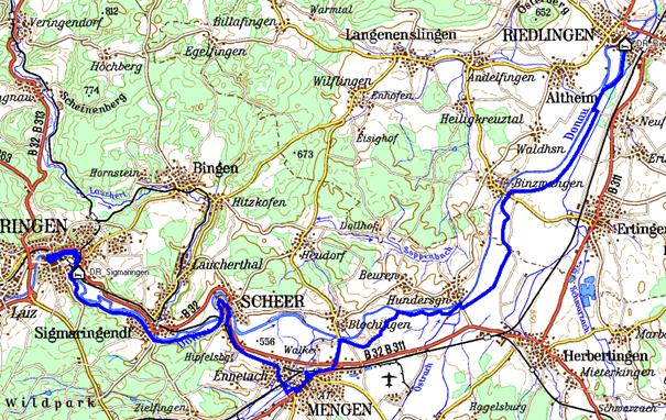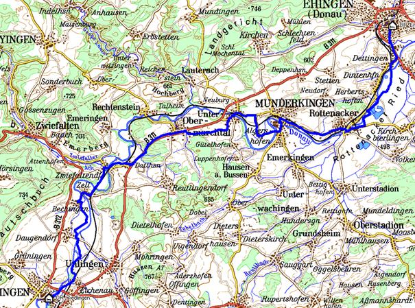Start/Ziel: Bahnhof Donaueschingen / Bahnhof Ulm