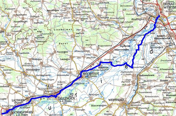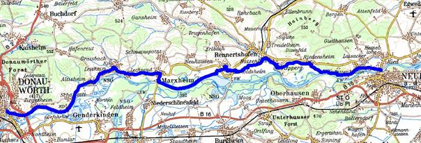 Kurz nach Hochstädt biegt die Strecke endlich auf eine weniger befahrene Landstraße ab. Über die Donau geht’s weiter, ebenfalls auf kleinen Nebenstraßen bis Zusum. Kurz nach Zusum überquert man die Donau abermals, diesmal über die Staustufe, und folgt der Streckenführung zunächst auf feinem Schotter bis zum Eurocopter-Werk, wo Helikopter gebaut werden. Auf kleinen Sträßchen geht’s dann die letzten Meter bis Donauwörth.