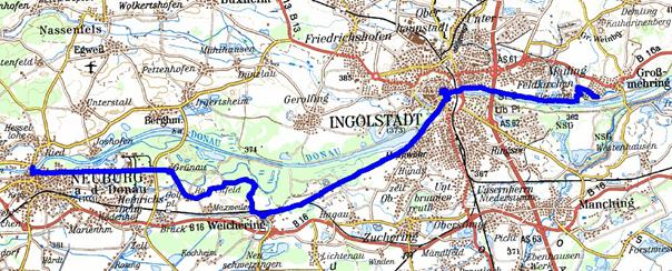 teilweise auch auf schwach befahrenen Landstraßen über Wackerstein nach Pförring.