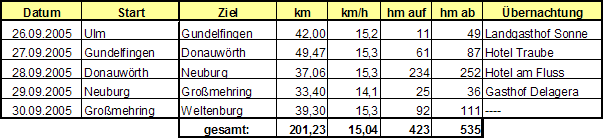 Zweite Etappe, 27.9.2005, Gundelfingen - Donauwörth, 49,5 km, 61 hm