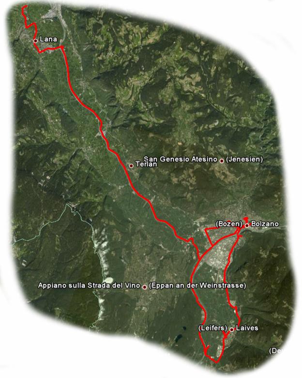 Zweite Etappe, 20.5.2008, von Tscherms nach Leifers, 52,2 km, 82 hm