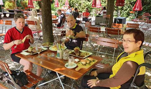 Nur essen konnten wir vier Radler nicht viel, Knödel und Käsespätzle vom Mittag