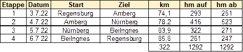 322 km, 1292 hm, 4 Etappen