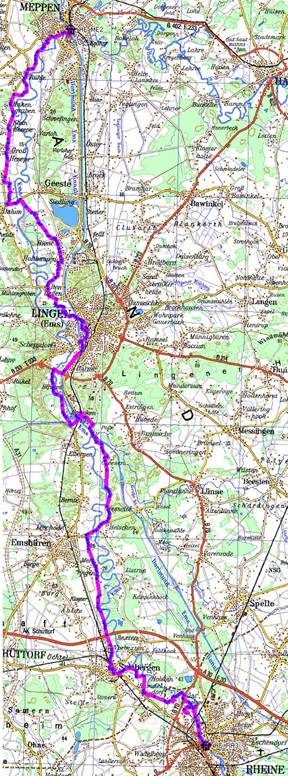 Dritte Etappe, 9.6.2007, von Meppen nach Rheine (75,2 km, 106 hm)