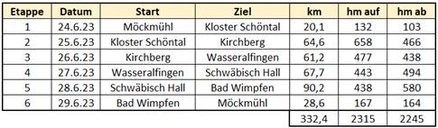 direkt im Anschluss an die Kocher-Jagst-Tour zu meiner jährlichen Transalp-Tour