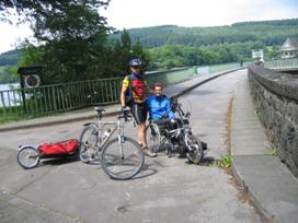 Nachdem wir unsere Lennetour abgebrochen haben, blieb Zeit für eine erweiterte Tour um die Biggetalsperre. Die ebenfalls auf unserer Homepage beschriebene Biggetour haben wir um einige Kilometer entlang der Listertalsperre erweitert. Diese Erweiterung kann aber auch problemlos als eigenständige Tour mit Handbike oder Rollstuhl gefahren werden. Der Weg ist durchgehend asphaltiert und weist so gut wie keine nennenswerten Steigungen auf. Allerdings führt der Weg nicht um die Sperre herum, und so muss Hinweg und Rückweg auf dem gleichen Weg bewältigt werden.