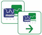 Die Beschilderung des Radwegs ist anfangs ziemlich lausig. Hat man Bayreuth hinter sich gelassen, wird's etwas besser, aber wirklich einheitlich wie beispielsweise an Donau oder Weser ist es eigentlich nie. Wenn es Schilder gibt, sehen diese meist so oder so ähnlich aus: