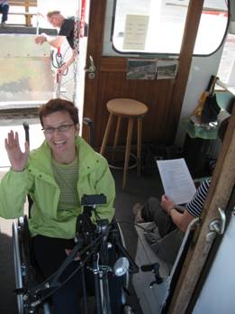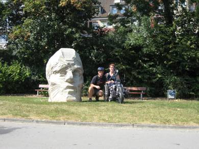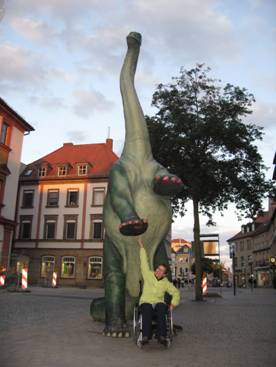 Wir wussten schon, dass das Zimmer, das wir dort gebucht hatten, nicht besonders rolli-tauglich ist. Allerdings war die Tür zum Bad in unserem Zimmer extrem schmal. Britta hat's mit ihrem sehr schmalen Rolli gerade so geschafft, nicht ohne den einen oder anderen Kratzer in der Zarge zu hinterlassen. Dabei hatten wir bei der Reservierung die Türbreite messen lassen. Aber beim Einchecken hatte man uns schlicht das falsche Zimmer gegeben. Egal, wir sind auch so einigermaßen klar gekommen. Wegen des Regens war Britta's Rolli ziemlich eingesaut. In der Dusche habe ich den Rollstuhl vom gröbsten Dreck und plattgefahenen Schnecken befreit. Ein Stadtrundgang und ein gutes Essen haben den Tag abgerundet und müde ging's zurück ins Hotel.