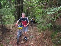 Hier verläuft ein ziemlich verblockter Singletrial in steilen Serpentinen