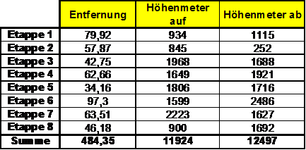 484 km, 11924 hm, 8 Etappen