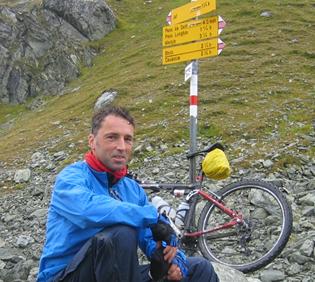 Wie dem auch sei, noch ein kurzer Gegenanstieg und dann ging’s 1500 hm abwärts auf einer schmalen Fahrstraße, teils auf Schotter, später asphaltiert. Unterwegs nutzten wir den einen oder anderen Brunnen, um die heiß gebremsten Felgen zu kühlen. Endlich, um ca. 20:00 Uhr kamen wir nach etwa 11:30 Stunden Fahrzeit im Gasthaus Hirschen an, wo Gonso uns schon erwartete.