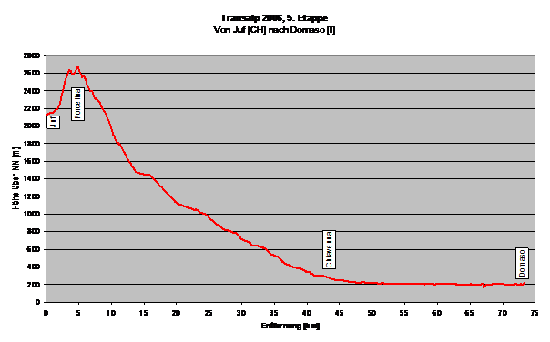 Höhenprofil dieser Etappe verhieß einen langen Anstieg von annähernd 1800