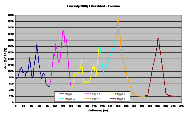 407 km, 12405 hm, 6 Etappen