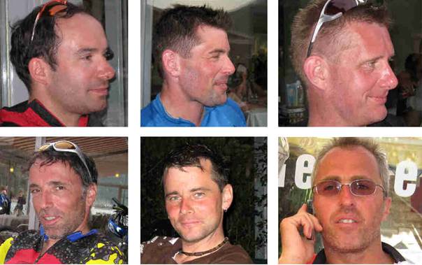 Wie dem auch sei, Zahn meint, die ersten 300 hm zum Termoncello sind fahrbar, der Rest ist Schieben/Tragen. Das kann man so auch bestätigen. Wir haben fälschlicher Weise schon nach ein paar hundert Metern den Wanderweg anstatt den Fahrweg gewählt, und so kamen wir in den Genuss von ein paar Extra-Schiebe-Metern. Oben angekommen hat Gunther erst mal ein Bad im Wassertrog der Almkühe genommen. Der Salzbedarf dieser Rindviecher dürfte deshalb bis auf Weiteres gedeckt sein. Nach einem letzten Blick zurück auf die Felswände der Brenta ging's auf ultrasteilem Schotterweg abwärts. Nach ein paar hundert fahrbaren Höhenmetern bogen wir auf ein asphaltiertes Sträßchen, auf dem wir ins Tal schossen. Trotz gelegentlichem Päuschen zum Bremsenkühlen, riss an Gunthers Vorderrad beim Anbremsen auf eine Kehre das Ventil ab… also Schlauch tauschen und vorsichtig weiter gen Tal rollen. Je weiter talwärts wir kamen, umso wärmer wurde es. Wir trafen in Denno auf eine Teerstraße, aber wo genau wollten wir uns noch mal mit den anderen Drei treffen? Karte wäre nicht schlecht…Vielleicht mal anrufen? Unglücklicher Weise hatten die Kollegen ihre Handys aus… also Simsen. Irgendwann kam dann auch eine Antwort und wir warteten vor Sporminore im Schatten auf die anderen. Mittlerweile war es nämlich recht warm geworden. Wiedervereint rollten wir weiter abwärts nach Crescino und haben dabei die Abfahrt nach Spormaggiore verpasst. Also 200 Extra-Höhenmeter auf dem Weg nach Andalo. Angesichts der schon fortgeschrittenen Uhrzeit entschieden wir uns für die Straßenvariante. In Andalo gab's noch mal eine kurze Rast mit Apfelschorle und Kuchen, bevor wir über Molveno entlang des Molveno-Sees auf schönen Trial nach Neblia und dann höhengleich über eine Panorama-Straße auf Schotter und dann abwärts auf Kopfsteinpflaster zum Lago di Tobolino rollten. Das war's also, jetzt nur noch entlang des Sacre nach Torbole rollen. Gegen 18:30 sind wir dann endlich in Torbole angekommen. Es ist immer wieder ein tolles Gefühl, nach einem Alpencross versifft und verschwitzt am Gardasee anzukommen. Man fühlt sich angesichts der Schicki-Micki-Carbon-Titan-Beryilium-Biker dort recht elitär… als richtiger Biker eben, der einen Berg auch ohne Shuttle bezwingen kann. Wenn's brennt auch in der TCM-Unterhose (mit Eingriff). Darauf erst mal einen Dujardin, oder besser gleich ein Weizen. Noch schnell zuhause anrufen, dann vielleicht noch'n Bierchen und ein paar Spagetti Pomodoro. Gunther hat sich die Wartezeit auf die Nudeln etwas verkürzt, indem er mal kurz in den Lago gehüpft ist. Wir hatten natürlich kein Zimmer gebucht, und deshalb haben wir beim Bestellen einfach mal die Bedienung gefragt, ob das Etablissement auch über freie Doppelzimmer verfügt. Nach einigem Hin und Her ergatterten wir die angeblich letzten drei Zimmer. Wir haben also im Hotel Geier in Torbole eingecheckt, dann Duschen und los zum Surfers-Grill, unserer Standard-Adresse für den ersten Abend am Lago. Essen war wie immer topp, danach noch ein paar Caipirinha's (http://de.wikipedia.org/wiki/Caipirinha) draufgeschüttet. Müde ging's um ca 01:00 Uhr zu Bett. Nur zwei haben's etwas länger ausgehalten, und so wurde ich gegen 4:00 Uhr von Rufen vor dem Fenster wach, ich möge den Herrschaften doch Einlass durch die Hotel-Tür gewähren.