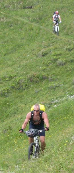 weiter auf schmalem, steilem Pfad. Zahn spricht von 150 hm schieben, doch durch