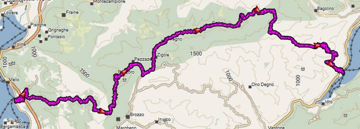 Sonntag, 15.7.2012, von Lenna nach Vilminore, 61,8 km, 2733 hm bergauf, 2170 hm bergab