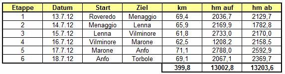 399 km, 13002 hm, 6 Etappen