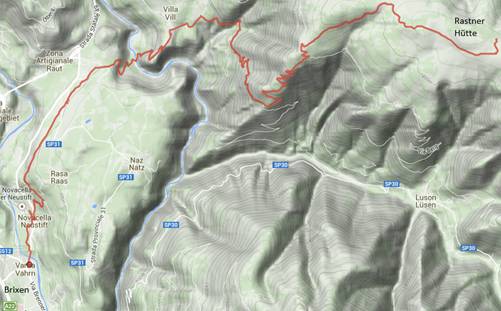 Sonntag, 20.7.2014, von Brixen zur Rastner Hütte, 24,5 km, 1477 hm bergauf, 199 hm bergab