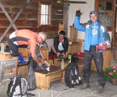 Borgles-Hütte zieht. Die Hütte war brechend voll, aber wir haben noch einen