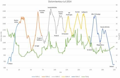 Mittwoch, 23.7.2014, von St Kassian nach St Ulrich, 52,9 km, 1863 hm bergauf, 2202 hm bergab