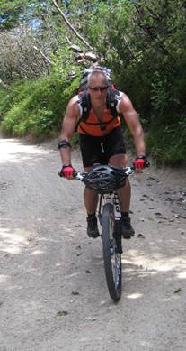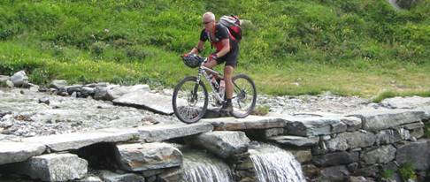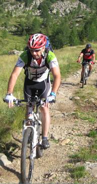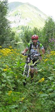 einem schmalen Pfad. Auch die weitere Abfahrt fand auf einem Trial statt,