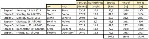 absolvierten. Die Daten des letzten Teils von Torbole nach Oberstdorf muteten