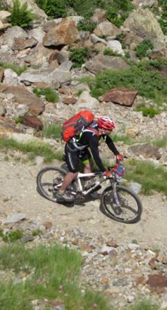 wolkenlos. Auch bergab war erst einmal Schieben angesagt, weil der Weg für uns