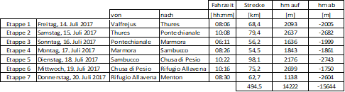 km, 14222 hm,7 Etappen