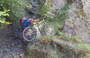 die teilweise recht ruppige Wegbeschaffenheit und den hohen Schiebeanteil
