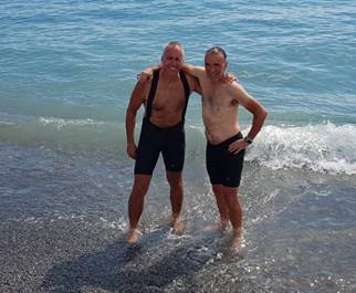 Ventimiglia an. Wir düsten geradewegs zum Strand für ein Finisher-Bild und ein