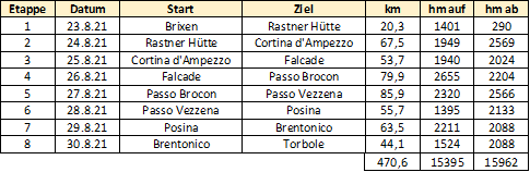 Montag, 23. August 2021, Anreise und erste Halbetappe